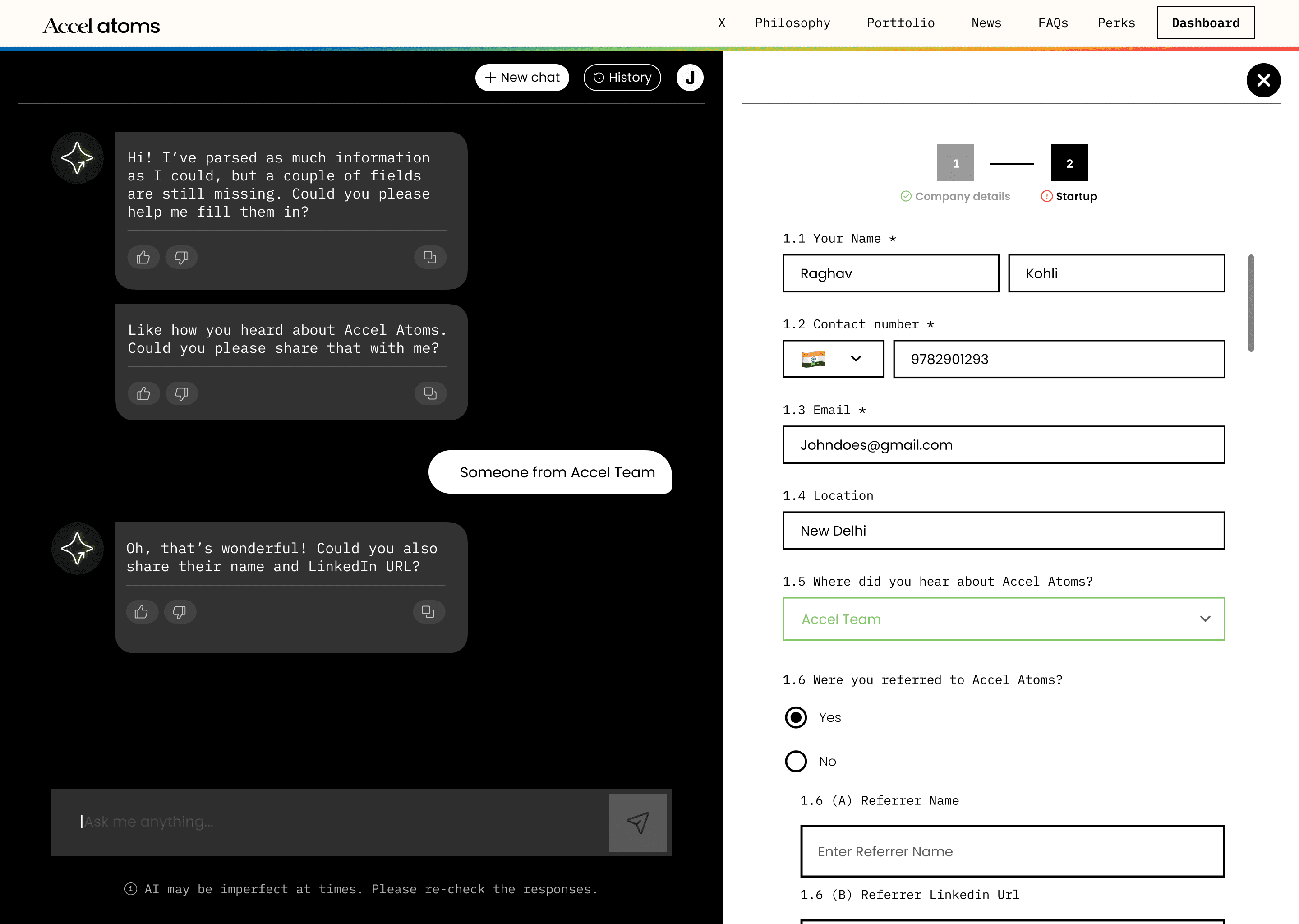 There was no formal user research phase, the timeline didn't allow it. Instead, discovery happened through two parallel tracks: conversations with the Accel Atoms team about what the onboarding process actually looked like, and a close read of the application data from previous cohorts.