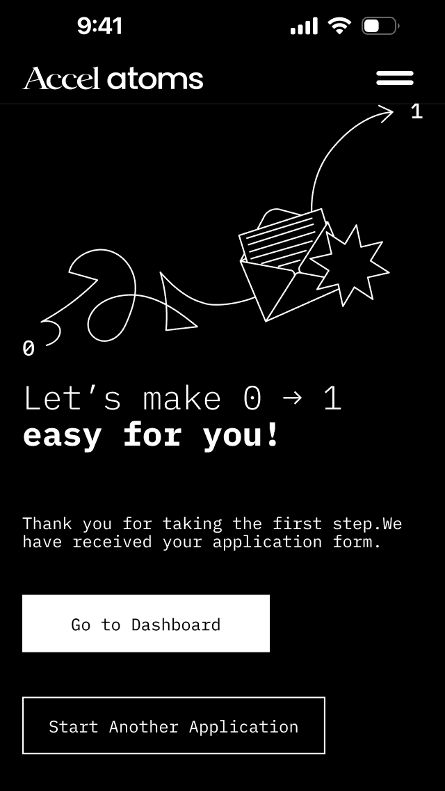 Tone and visual design were solvable. The hard problem was the application logic underneath. Every permutation of founder state, document completeness, and program eligibility had to be designed for. Miss an edge case and either a great founder drops off, or a poor fit gets through.