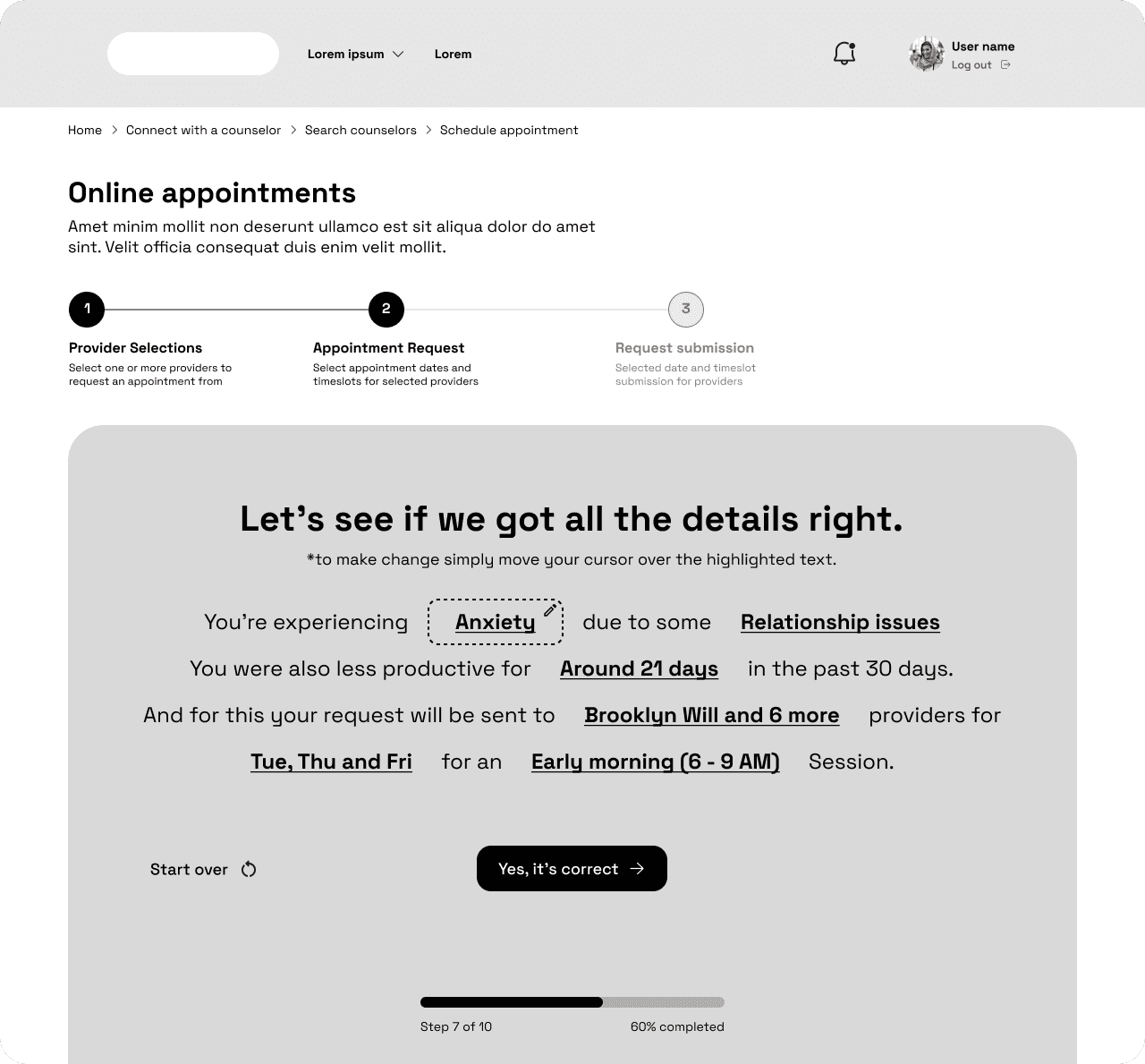 Incorporating conversational UX in the appointment scheduling flow.