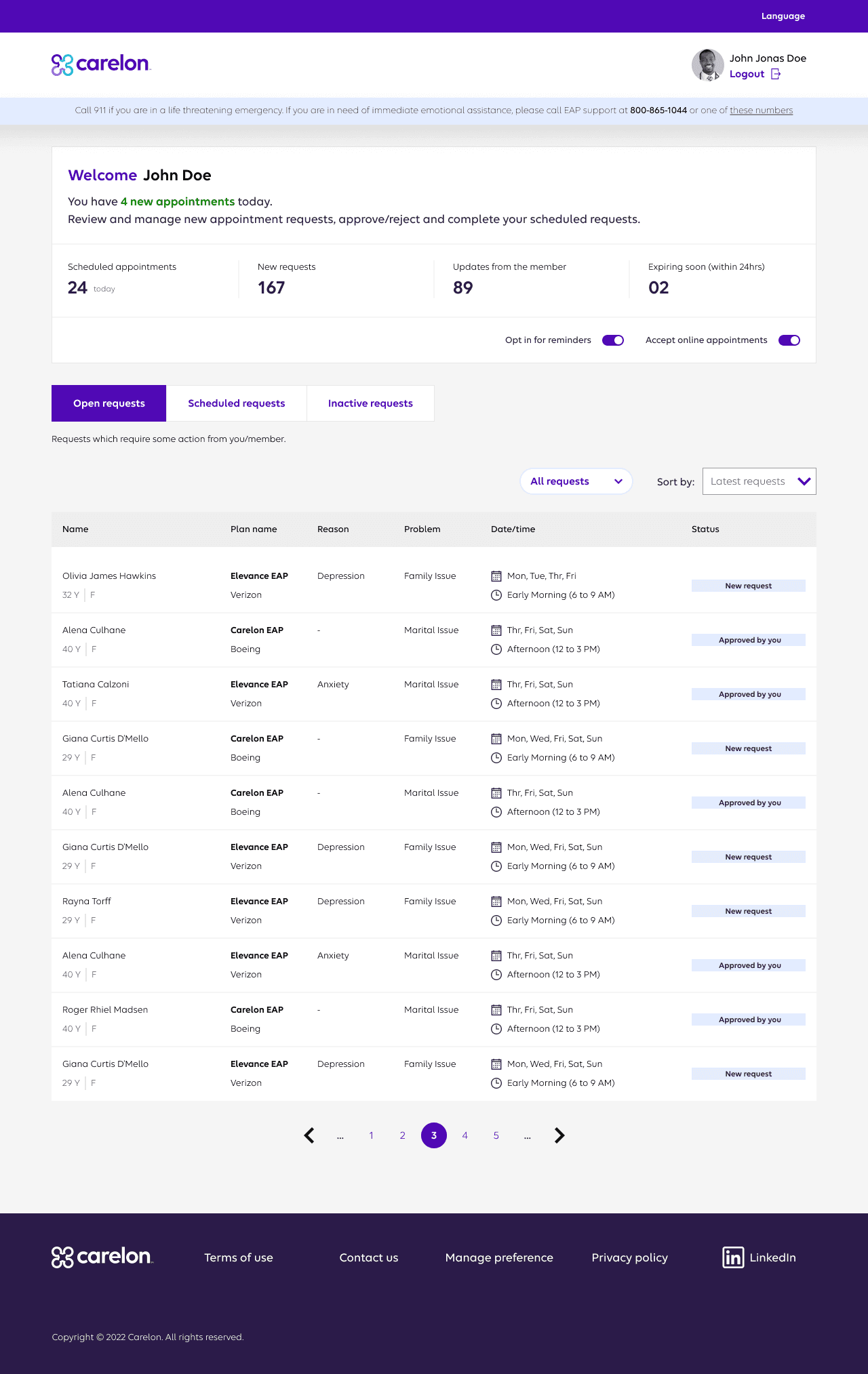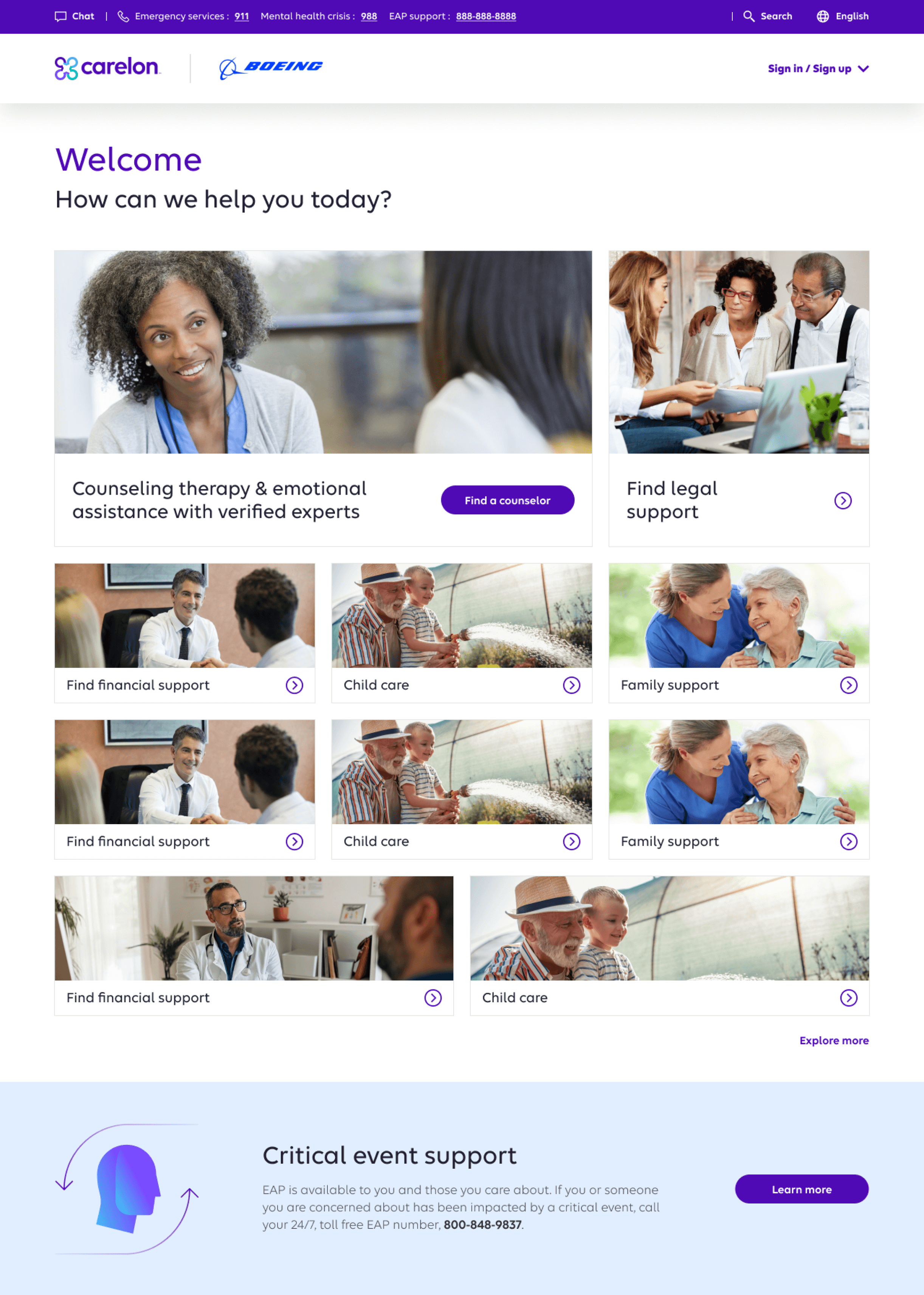 Carelon Wellbeing is an Employee Assistance Program — a federally supported benefit that gives employees access to mental health counselling, financial planning, legal resources, and crisis support. The digital portal is the primary access point for employees seeking help. For many users, it's the first place they turn when they're already in distress.