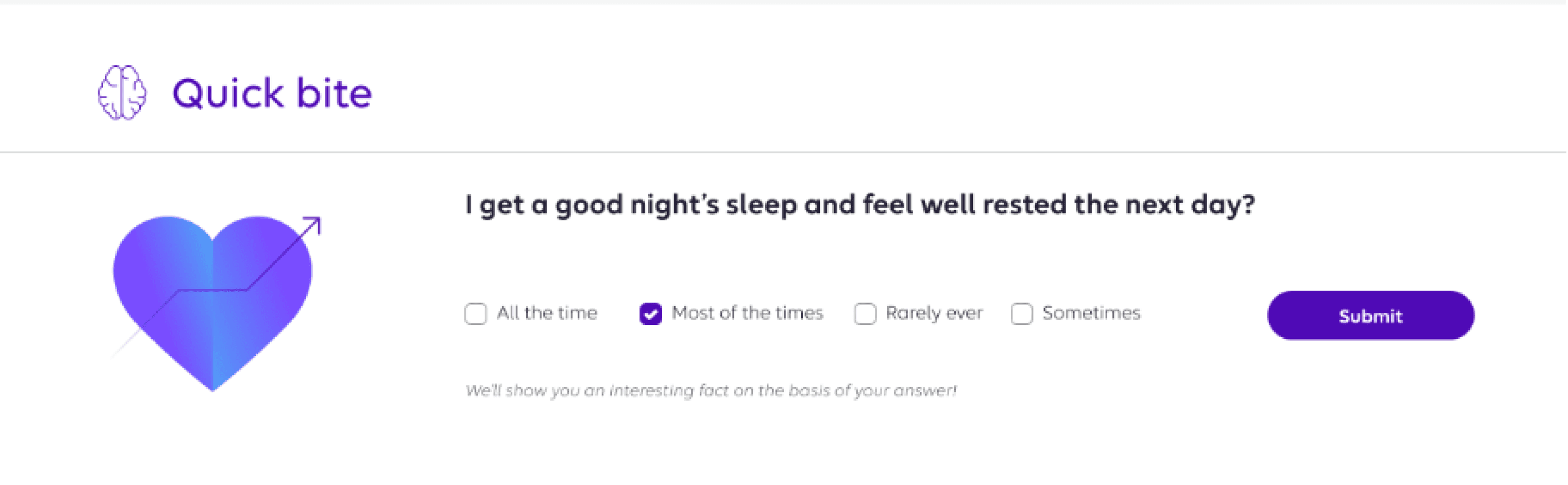 With interactive features like Quick Bite, where users answer a simple questions and based on that system smartly recommends resources like articles, videos, podcasts etc.