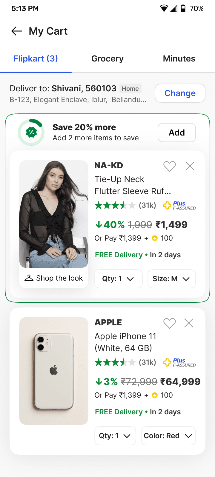 This project was an internship exploration — designs were presented to the product team and leadership at Flipkart.