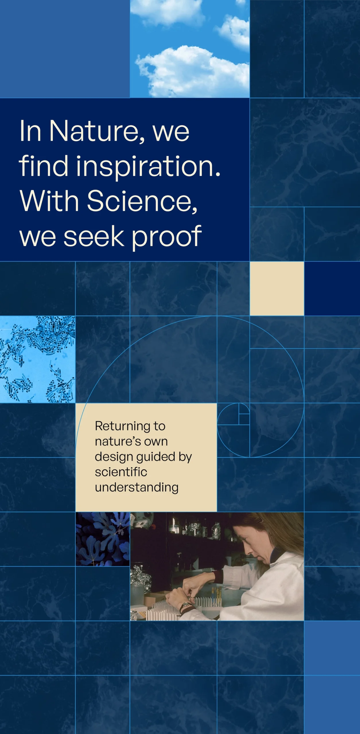 The microsite carried the Fibonacci geometry, nature-led palette, and editorial typographic structure from the physical identity — ensuring participants who attended in-person and online shared the same visual world.